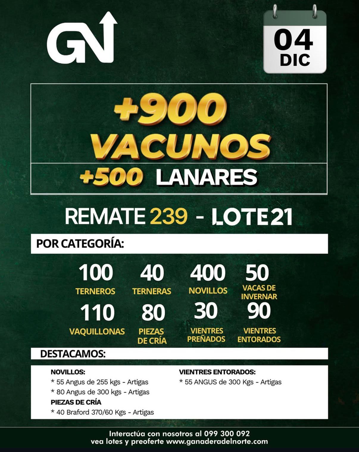 Por Martín Ferreira Pinto Pantalla Uruguay concretó su segundo remate del mes desde las instalaciones del LATU, donde dispersó 4.239 vacunos, lo que representa el 91% […]