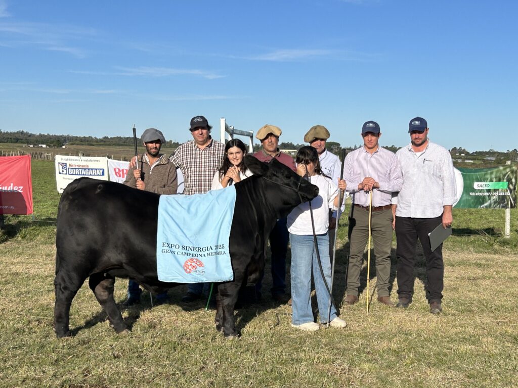 La Campeona Suprema, una Junior que fue campeona en su categoría y Mejor Hembra PI Individual a corral, fue expuesta por los hnos. Burutarán. Consultado por el ejemplar, Rafael señaló que “esta vaca es realmente muy importante para nosotros. El año pasado, con apenas 8 meses, ya fue Gran Campeona en la Expo Salto. Luego obtuvo el mismo título en la Nacional Brangus y, además, fue elegida como la Tercera Mejor Hembra. Este año volvió a brillar en la Expo Durazno como Gran Campeona, y ahora, en Expo Sinergia, se consagra como Gran Campeona y Campeona Suprema. Es un orgullo enorme para nuestra cabaña.”